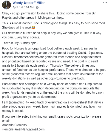 Mr. Montgomery from Clio dropped N-95 masks off at the Local